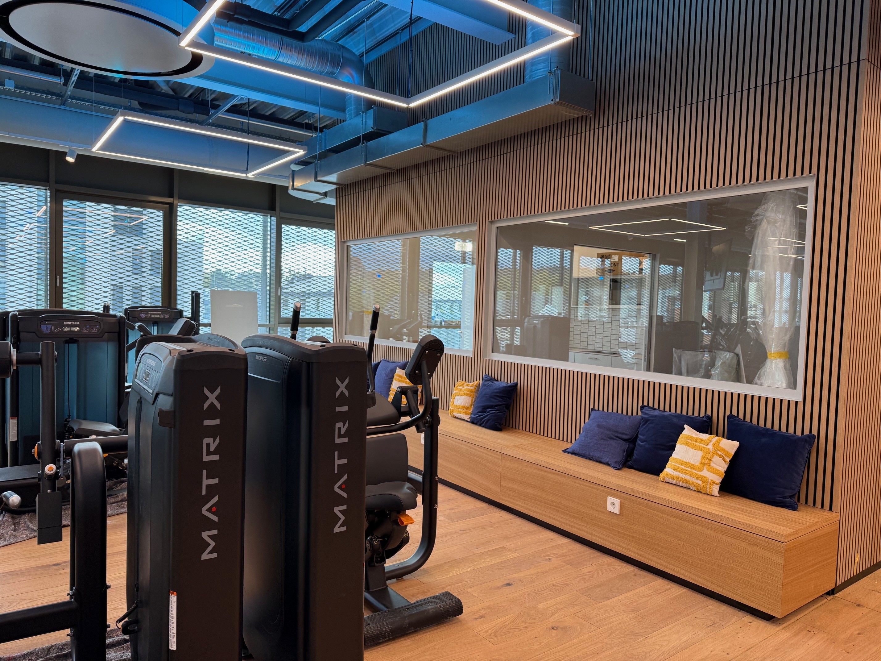 Trois heures de parking gratuit dans le centre commercial, accès direct et abrité au centre, vestiaires modernes équipés de serrures de casiers sans batteries et station à boissons durable. Notre centre vous accueille dans une architecture contemporaine où le bois occupe une place privilégiée. Il insuffle une chaleur et une convivialité uniques à l’ensemble des espaces, baignés de lumière naturelle. L’ambiance harmonieuse, l’éclairage haut de gamme et le système d’aération performant créent un environnement propice à la motivation, à l’épanouissement personnel et à une expérience fitness optimale.